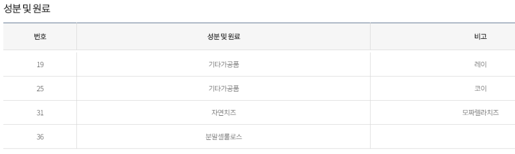 '코이'치즈는 '레이'치즈의 윗 단계인 이미테이션치즈라고 합니다.